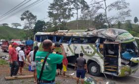 El volcamiento de un bus de la Cooperativa Santo Domingo cuyo destino era la parroquia Convento, en Manabí, deja un saldo mortal. Se conoce de forma preliminar que las víctimas serían 3.