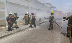 Bomberos controlan un incendio en una bodega del sur de Guayaquil