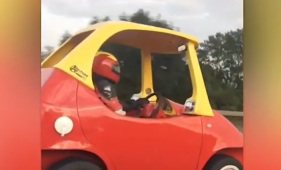 ¡Pillan a un adulto conduciendo un "coche de juguete" por una autopista!