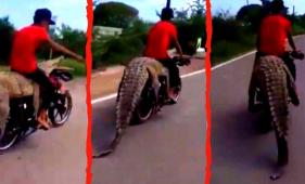 Un cocodrilo de 2,5 metros en motocicleta: un video viral sobre tráfico de animales salvajes