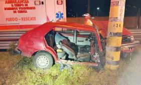 Cuenca: Dos heridos graves tras el choque de un auto contra un poste de alumbrado público
