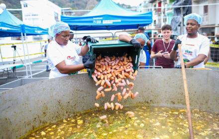 El evento, organizado por la Alcaldía de Esmeraldas, reunió a chefs, emprendedores, amas de casa y visitantes nacionales y extranjeros que se deleitaron con el aroma de un plato emblemático de la cocina afroesmeraldeña. “Hoy Esmeraldas no solo cocina, también escribe historia con sus propios sabores”, expresó el alcalde Vicko Villacís durante el acto central, en medio de aplausos y tambores.