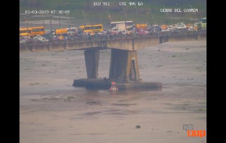 Un motorizado que se movilizaba por el puente de la Unidad Nacional, sentido Guayaquil–Durán, cayó al río la mañana de este domingo 3 de marzo.