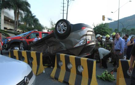 El siniestro provocó que los dos ocupantes del coche virado quedaran momentáneamente atrapados. Tuvieron que ser sacados de la averiada carrocería por rescatistas del Cuerpo de Bomberos de Guayaquil y luego trasladados a una clínica.