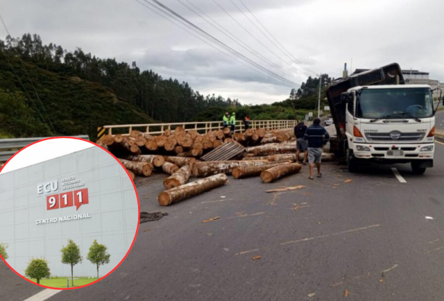 Un segundo incidente ocurrió a las 08:30 en el sector de Píntag, en la carretera E35, a la altura del kilómetro 253. En esta ocasión, la alerta fue por la caída de una carga de troncos de madera desde un camión, lo que generó una obstrucción parcial de la vía.