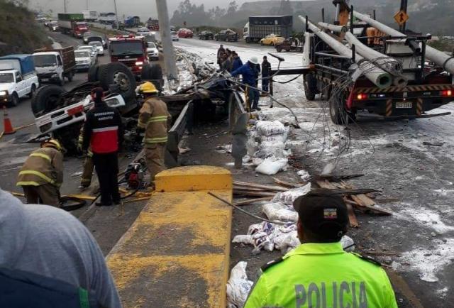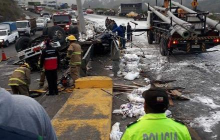 El conductor Holguer Barragán Riera de 25 años de edad, perdió pista, se estrelló contra las barandas y postes, y el pesado vehículo se volcó con 300 quintales de sal. El conductor murió.