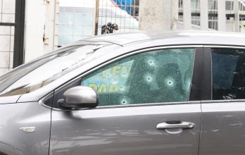 Adicionalmente, la llanta trasera izquierda resultó averiada, ya que también recibió impactos de proyectiles.