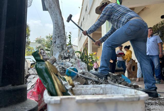 Con ayuda de un combo, funcionarios municipales derribaron la pequeña gruta de cemento que albergaba la estatuilla. La acción se ejecutó como parte de las intervenciones posteriores al hecho violento registrado en la zona.
