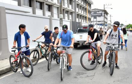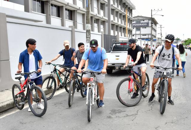 “Uno de aquí sí tuvo que prestar ‘bici’, pero la cosa es hacer ejercicio y no aguantar tanto tiempo detenidos en el congestionamiento”, mencionó. Eddie y sus cinco amigos retomaron su marcha sin miedo y continuaron hasta la Universidad de Guayaquil, ubicada en el centro de la urbe porteña.