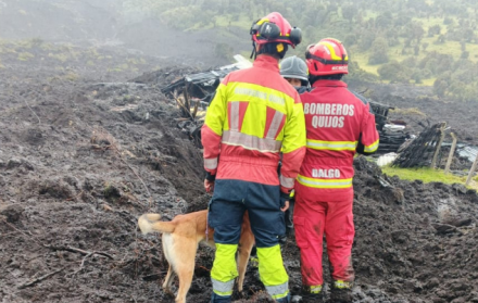 De forma paralela, las labores de búsqueda continuaron con el apoyo de la unidad canina especializada del Cuerpo de Bomberos de Quito, ante la sospecha de que otra persona, una mujer adulta, se encontraba desaparecida bajo los escombros del alud.