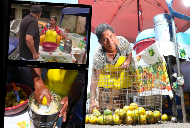 Las manos de Jessica no paran. Recoge naranjas de su cerca de alambre, las lava, corta y exprime. Así hasta completar un litro de jugo, porción que vende a un dólar. “Esta es mi manera de generar dinero para mantener a mis tres hijos”, dijo.