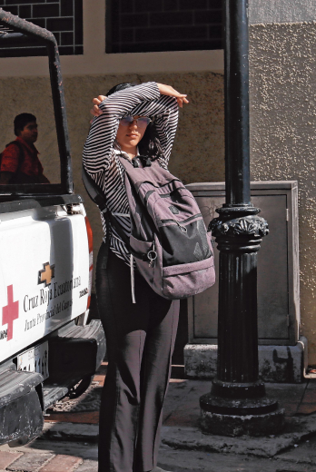Con sombrilla en una mano y abrigo en la otra, Josefina Zerna va a trabajar a diario en el centro de Guayaquil. El motivo son las cambiantes temperaturas que soporta la urbe durante la segunda quincena de agosto.