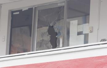 En una cámara de seguridad se observa a los dos delincuentes llegar; uno de ellos rompe el vidrio con un combo. Se llevaron 23.000 dólares