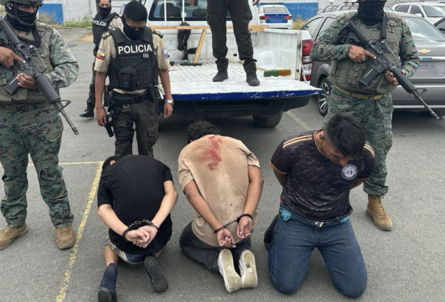 La detención se produjo minutos después de que en Durán se reportara el asesinato de una mujer en estado de gestación. Testigos del crimen indicaron que los sicarios que atacaron a la víctima se movilizaban en un vehículo con características similares al que fue interceptado por las Fuerzas Armadas.
