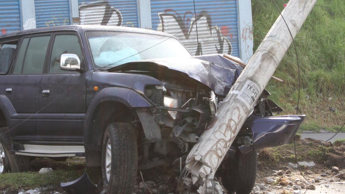 El vehículo destrozó toda la parte inferior del parante para el tendido de los cables eléctricos.