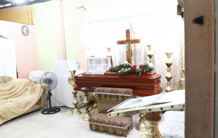 Este lunes 29 de julio de 2019, familiares y allegados de José Fidel Quiñónez Arias velan sus restos mortales en la casa de su tía, en la cooperativa 25 de Enero en el Guasmo de Guayaquil. Fuera de la vivienda, bajo una carpa azul y una carpa blanca, la tristeza era evidente entre los conocidos del difunto, quien tenía 32 años y murió el domingo al recibir siete balazos.