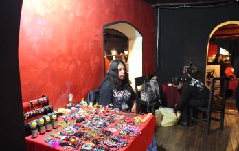 El bar Cat Cave, se convirtió en un templo esotérico que irrumpía con el ambiente habitual de esta zona que está llena de discotecas en las que retumban los bajos de los parlantes con música urbana. Aquí solo había espacio para calaveras, rituales y conocimiento de otro mundo. Cada emprendedor tenía una especie de altar en el que exponían sus productos: calaveras, velas, duendes, pulseras, ropa erótica, había de todo.