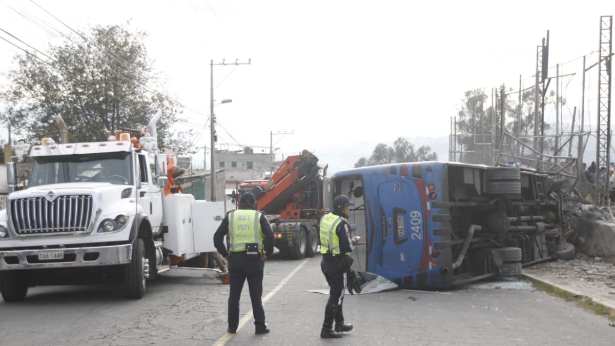 Bus se viró en Velasco, norte de Quito