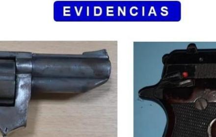 En poder de los sospechosos se halló dos armas de fuego, una pistola y un revólver, 120 municiones, droga, teléfonos celulares y dinero que no fue justificado.