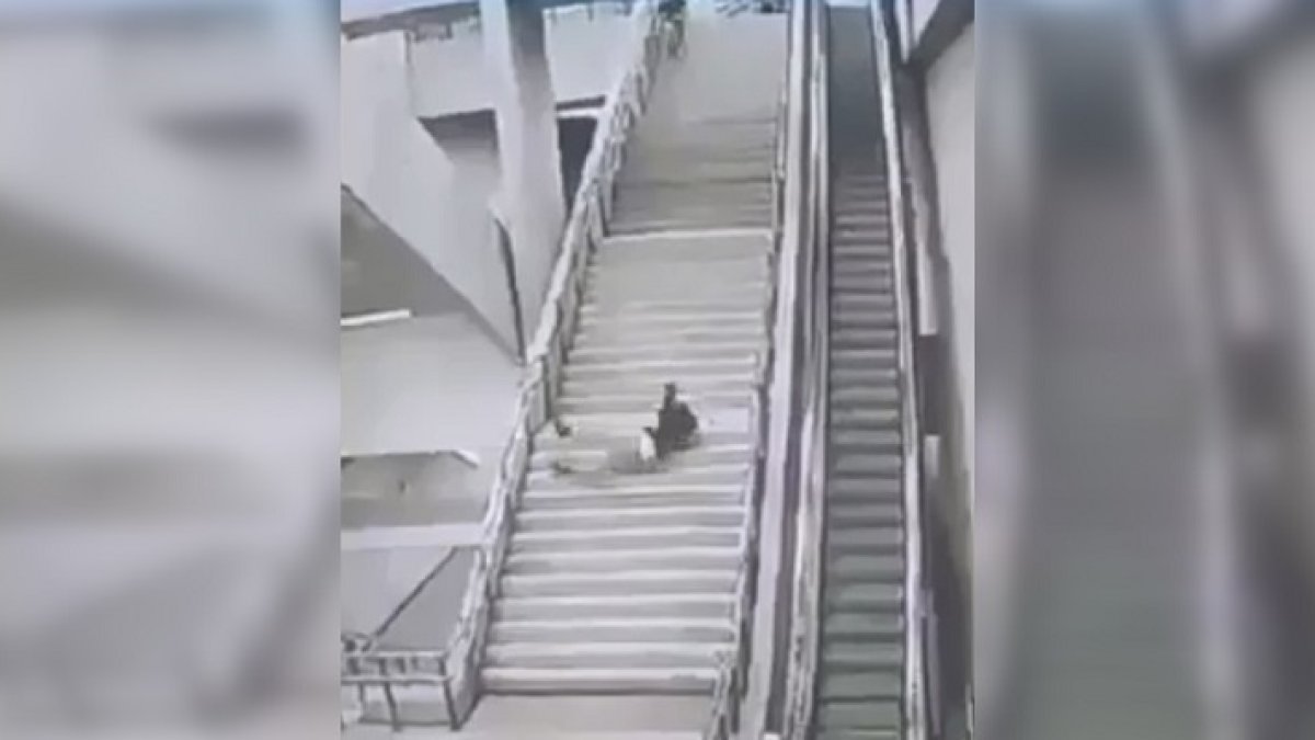 Medios locales informan que el hombre intentaba pasar sin cancelar el pasaje. Momentos después en la grabación se observa cómo el chico baja corriendo por las escaleras, pero aparentemente da un mal paso y tropieza cayendo desde una gran altura.