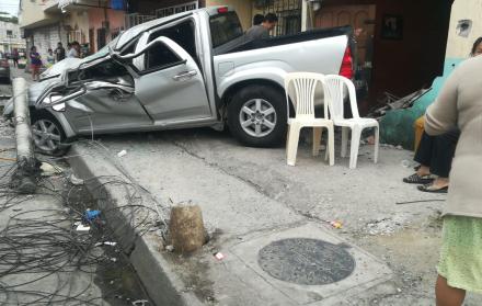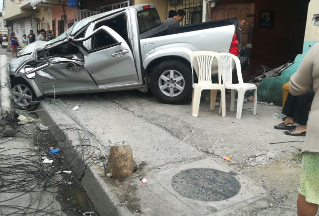 El estruendo que ocasionó un accidente despertó a la barriada de las calles Francisco Segura y la 25, a las 00:10 de este lunes 8 de julio, en el suroeste de Guayaquil. Una camioneta chocó contra un poste, lo desprendió y luego destruyó la fachada de una vivienda, cuyos habitantes habían acabado de entrar.