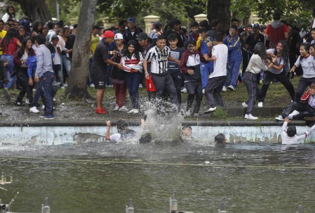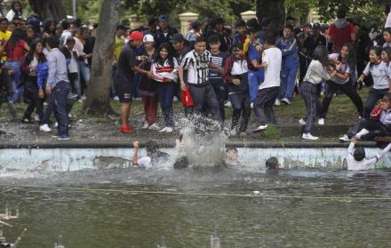 Llegó el medio día y la laguna del parque La Alameda, en el centro de Quito estaba cercada por agentes metropolitanos y de la Policía Nacional. Sin embargo los grupos de estudiantes se iban reuniéndose en el lugar. La consigna: celebrar el carnaval.