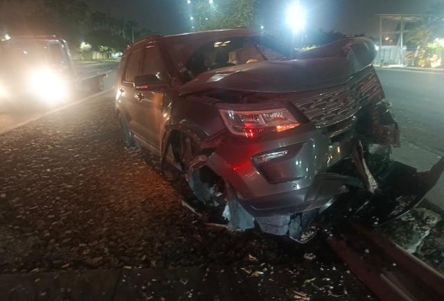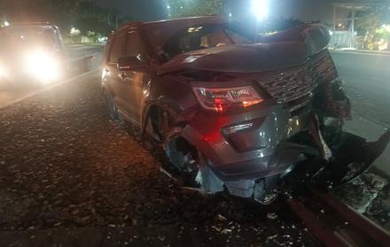El percance ocurrió alrededor de las 02:10 en la vía Puntilla - Aurora, a la altura de la urbanización Biblos. De acuerdo con el parte policial, la camioneta Ford Explorer SW impactó contra una baranda de seguridad y un poste de alumbrado público, lo que ocasionó serios daños en el chasis y las llantas delanteras del automotor.