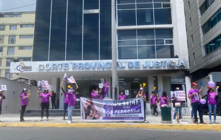 Con carteles y altavoces, familiares y amigos de María Fernanda López realizaron un plantón afuera de la Corte Provincial, en Quito. La protesta buscaba exigir que el proceso judicial contra José Luis Dueñas, sospechoso del crimen, sea transparente y que no se le conceda la apelación a su prisión preventiva, que pretende reemplazar por arresto domiciliario.
