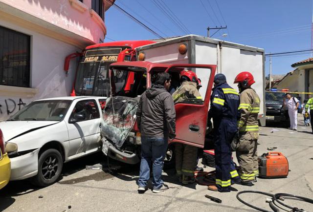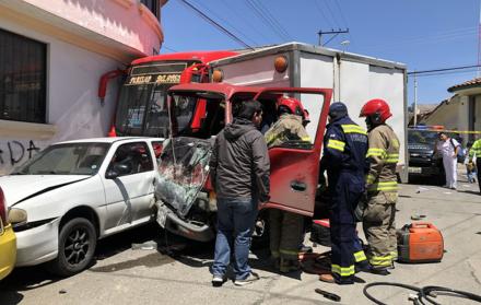 Entre los heridos constan los conductores del bus y del camioncito, así como tres pasajeros de la unidad de transporte público urbano, quienes fueron trasladados a distintos hospitales para su valoración.