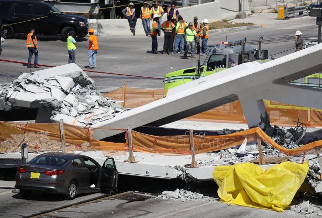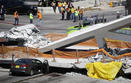 El puente, que había sido instalado el sábado pero aún no estaba abierto al público, conectaba la Florida International University (FIU) en un área cercana al aeropuerto.