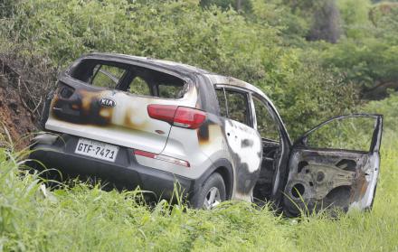 El mayor Santiago Tustón, jefe policial del distrito Pascuales, mencionó que el carro es un Kia Sportage, el cual luego fue encontrado quemado en un punto aledaño.