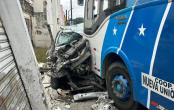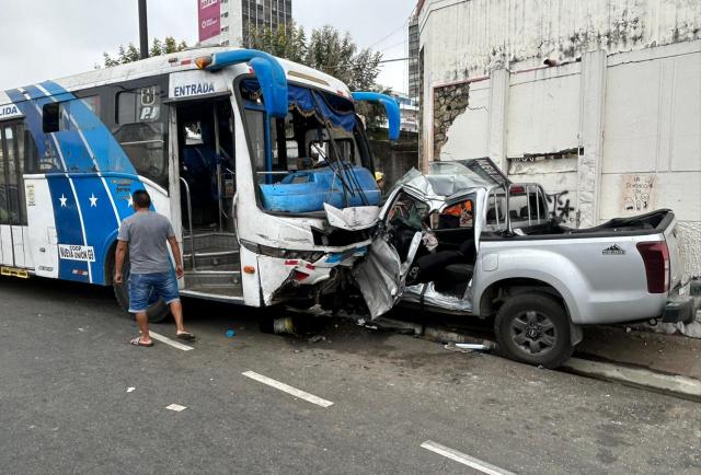La emergencia se registró este jueves, en las calles Tulcán y Luis Urdaneta. La camioneta se impactó con un bus