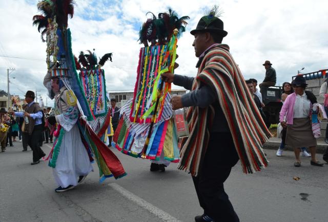 “Los danzantes nacen de la cultura indígena porque bailaban para agradecer al Taita Inti (padre sol) por las cosechas”, mencionó Tonato que iba vestido con su poncho de colores.