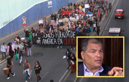 Rafael Correa cuestionó que solo 300 personas asistieran a la marcha contra Daniel Noboa, convocada algunos grupos sociales