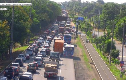 Un incidente de tránsito causó congestionamiento vehicular en la Vía a la Costa, en el norte de Guayaquil, la mañana de este miércoles 30 de abril de 2025. La Agencia de Tránsito y Movilidad de Guayaquil (ATM), a través de una de sus cuentas en la red social X, informó a las 08:57 que en ese momento se visualizaba alta demanda vehicular frente a la urbanización Puerto Azul, en el sentido de la vía que va hacia la avenida del Bombero.