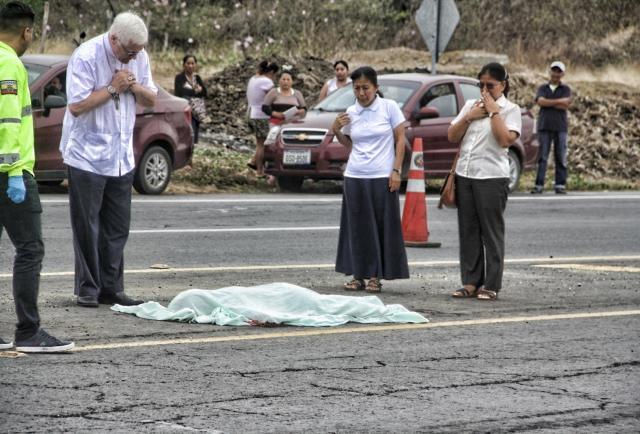 Una escena que dejó impávidos a los presentes fue cuando monseñor Andrés Carrascosa, nuncio apostólico que representa al papa Francisco en el Ecuador, hizo un alto al retornar a Guayaquil para bajarse del vehículo y acudir hasta el cuerpo de Yajaira, orar por ella y darle la santa bendición.