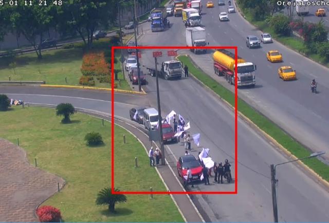 En imágenes de vigilancia consta la presencia de personas con banderas de CTE y el bloque de una de las vías con una grúa. Esto sucedió en la mañana del jueves 1 de mayo. CORTESÍA