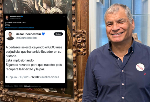 Pese a la ausencia de referencias directas, el comentario del sacerdote no pasó desapercibido. Horas más tarde, durante la misma mañana, el expresidente de la República, Rafael Correa, respondió citando el mensaje de Piechestein en la misma red social.