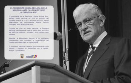 El Gobierno ecuatoriano oficializó dos días de luto nacional por la muerte del expresidente Alfredo Palacio