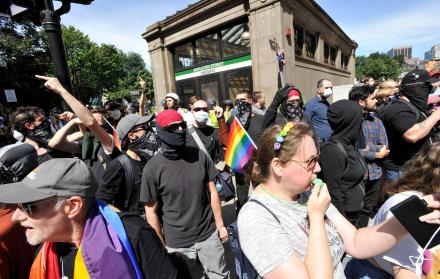 Las dos marchas de cientos de personas se encontraron afuera del ayuntamiento de esta ciudad del norte de Estados Unidos. Los asistentes a una y otra se enfrentaron con gritos y, en algunos casos, arrojándose objetos como vasos de café. Pero no hubo incidentes de violencia grave.