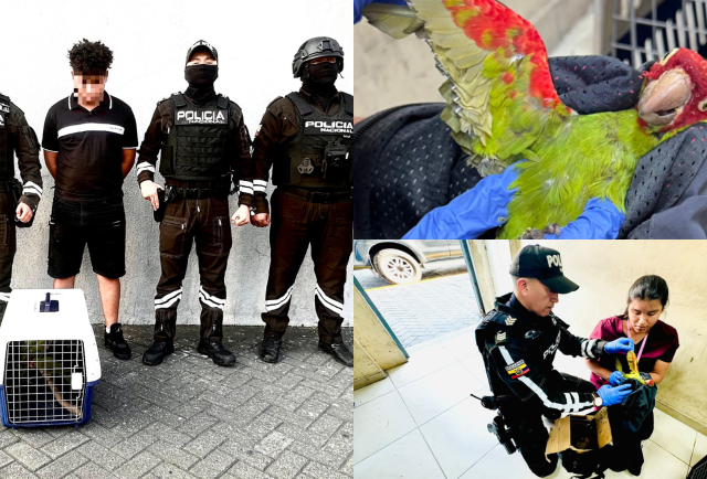 Se trataba de cuatro especímenes de fauna silvestre conocidos como aratinga de Guayaquil o loros caretirrojos. "Esto era un presunto delito contra la flora y fauna silvestre. Ante los indicios, al tratarse de una infracción penal, se aprehendió al ciudadano B. R. J. N.", comentó el oficial.