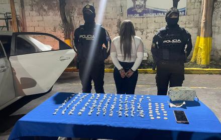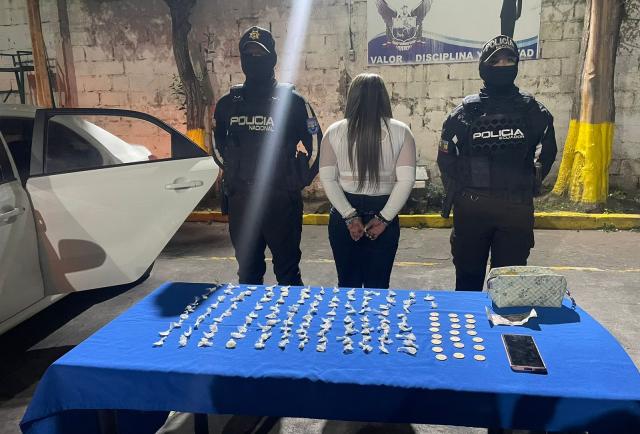 La primera sospechosa es Ived Jaqueline Ruiz Guevara, una ecuatoriana que circulaba por el sector de Chimbacalle, en el sur de Quito. Los policías notaron que conducía de una manera inusual, por lo que le pidieron detenerse. Al revisarla, encontraron en una cartera cinco fundas plásticas envueltas en cinta café, con una sustancia polvorienta color beige. Todo apunta a que era cocaína.