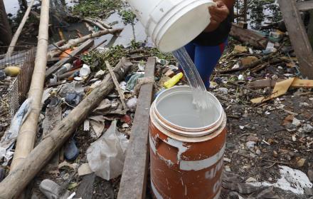 Abasteciéndose con agua del río Babahoyo, así encontramos a Birmania Guale, habitante de la cooperativa 16 de Abril del cantón Durán, uno de los tantos sectores de esta ciudad donde desde hace varias décadas no tienen agua potable con normalidad.