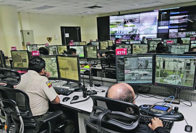Extra acompañó a los evaluadores que monitorean las cámaras en la sala de videovigilancia del Ecu 911.