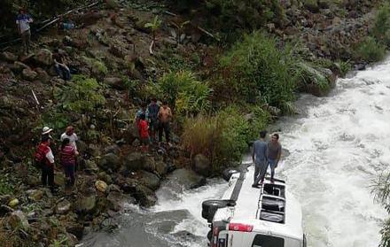 En la parroquia Balsapamba del cantón San Miguel, provincia de Bolívar, una buseta, que trasladaba a miembros de una orquesta, se quedó sin frenos y cayó al río Cristal.