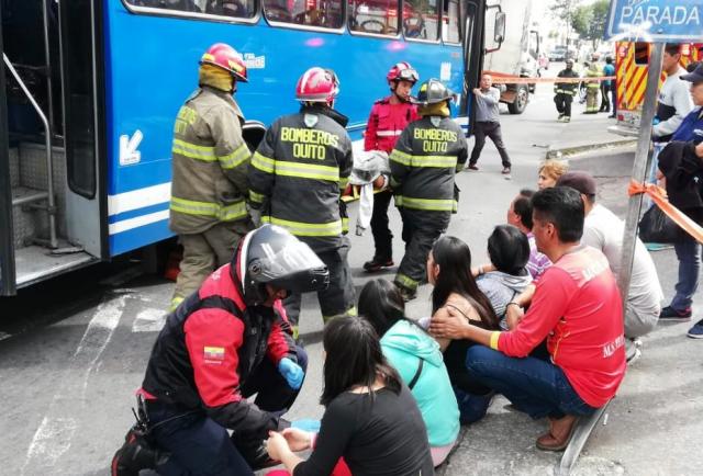 Seis personas resultaron heridas tras choque de bus y camión en Quito