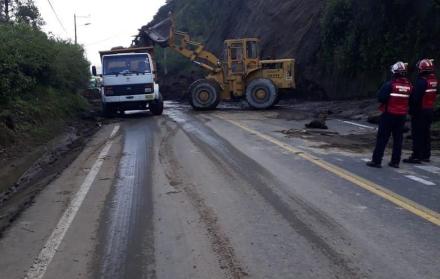 En la vía de Cununyacu, oriente de Quito, se han realizado trabajos para habilitar el tramo desde el lunes. La intervención de maquinaria fue necesaria luego de que las lluvias causaran un deslizamiento de tierra.