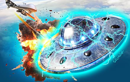 Lo que siguió parecía sacado de la ciencia ficción: los militares desplegaron un dron MQ-9 Reaper que, al aproximarse al ovni, disparó un misil Hellfire contra el orbe.