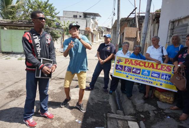 Max Monaga se está cansando de subirse a los buses o cantar en las esquinas para ganarse unas monedas y ayudar con la comida en casa. “Quiero trabajar, puedo hacer muchas cosas, pero nadie me da la oportunidad” dice el cantante de Pascuales, a quien todos conocen como el ‘Ciego de la Lírica’.