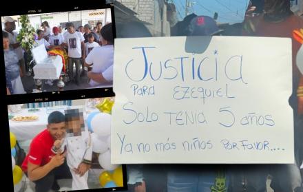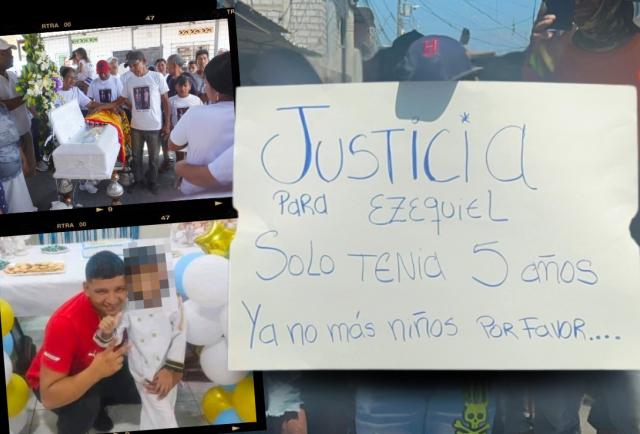 "Justicia para Ezequiel. Solo tenía cinco años. ¡Ya no más niños muertos, por favor!", decía uno de los carteles que encabezaban el cortejo fúnebre de Andreu Ezequiel Bajaña Medina, el pequeño asesinado la tarde del domingo 21 de julio mientras jugaba en casa de sus abuelos, en las calles 20 y la K, en el suburbio de Guayaquil.